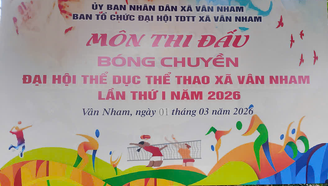 Trong không khí thi đua sôi nổi hướng tới Đại hội Thể dục thể thao xã Vân Nham lần thứ I năm 2026, ngày 01 tháng 03 năm 2026, UBND xã Vân Nham đã tổ chức khai mạc Giải thi đấu bóng chuyền hơi nam, nữ tại sân bóng chuyền thôn Phổng, xã Vân Nham.