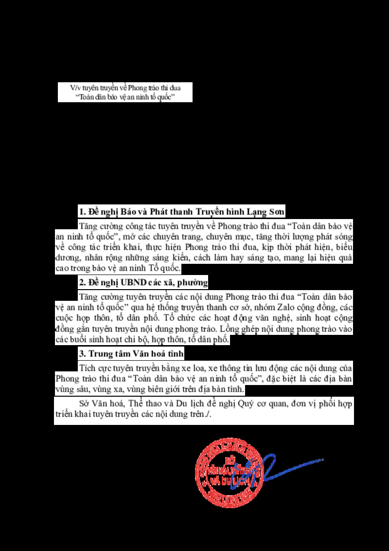| Tiêu đề văn bản | V/v tuyên truyền về Phong trào thi đua “Toàn dân bảo vệ an ninh tổ quốc” | ||